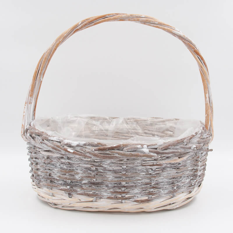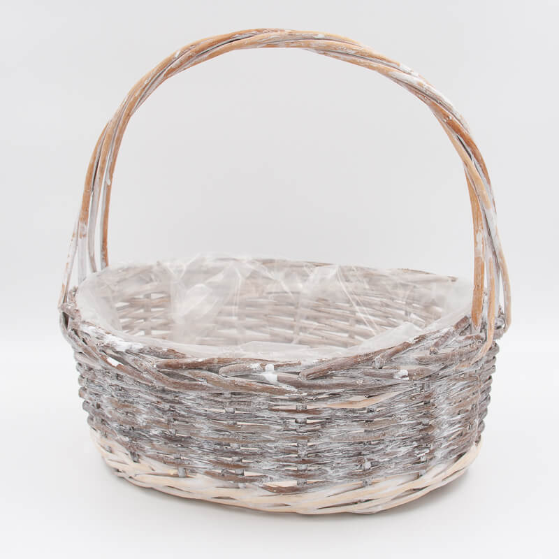 Качественная корзина изготовлена из ивовой лозы, имеет прочное основание и боковины, а также надёжную ручку.